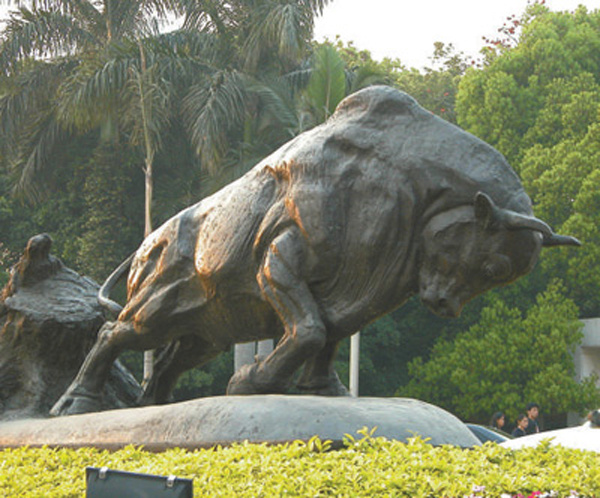 图为深圳市的拓荒牛雕塑。