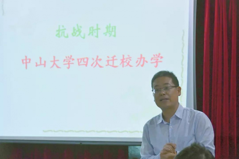 抵达当日晚,我系张文俊副教授为同学们召开了关于中大校史的讲座,详细地回顾了中山大学抗战时期四次迁校办学的历史,从自然地理环境、社会经济文化以及外部抗战环境等等多个角度分析了中大迁校办学的原因,与此同时,他也展示了抗战时期中大学子“读书不忘救国,救国不忘读书”而为社会做出的贡献,如宣传抗日、传播医学知识、发展地方文教事业等等。在讲座的最后,张文俊老师和万忠娟副书记为同学们第二天的考察活动提出建议,支持同学们发挥学科优势,时刻保持问题意识、积极走进基层生活,为坪石地区的发展建言献策。