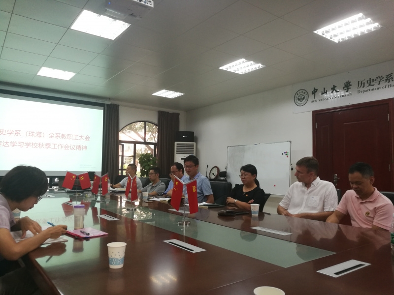 2019年9月21日至22日,我校2019年秋季工作会议在深圳市光明区顺利召开。9月29日下午,历史学系(珠海)在珠海校区海滨红楼10号召开全系教职工大会,传达学习学校秋季工作会议精神。会议由系主任吴滔教授主持,全体教职工参加会议。