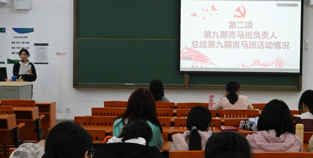 李佳宇同学总结了第九期青马班活动情况,回顾了8次理论实践学习成果。 2024级本科生彭韵瑶作为学员代表,分享学习收获,强调知行合一的重要性。随后,珠海校区现场为第九期学员颁发结业证书。