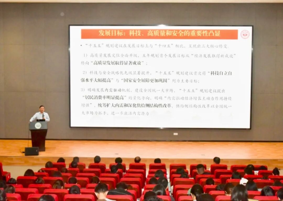 为深入学习贯彻党的二十届四中全会精神,深刻理解“十五五”规划的战略部署与实践要求,12月18日,中国语言文学系(珠海)、历史学系(珠海)、哲学系(珠海)、国际金融学院、国际关系学院和旅游学院联合开展专题宣讲会,本次宣讲会由国际金融学院副院长张学志教授主讲,主题为“当前宏观经济形势与‘十五五’规划”。宣讲会由历史学系(珠海)党委书记万忠娟老师主持。