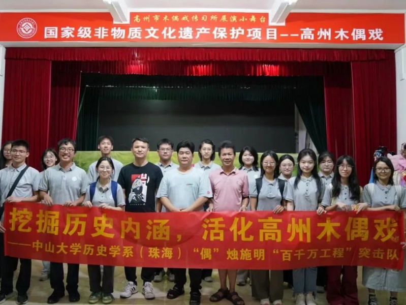 7月15日-18日,在马克思主义学院青年教师专职辅导员张爱萍老师和我系党政专职辅导员胡婉茜老师的带领下,18名志愿者同学共同前往茂名市高州市,开展了为期四日的“百千万”工程行动。本次活动的主题为:“偶”烛施明——挖掘历史内涵,活化高州木偶戏。活动联动高州市文旅局和高州木偶戏传习所,结合中山大学优秀大学生的专业基础和创意思维,致力于使高州木偶戏这一文化瑰宝焕发出新的活力。
