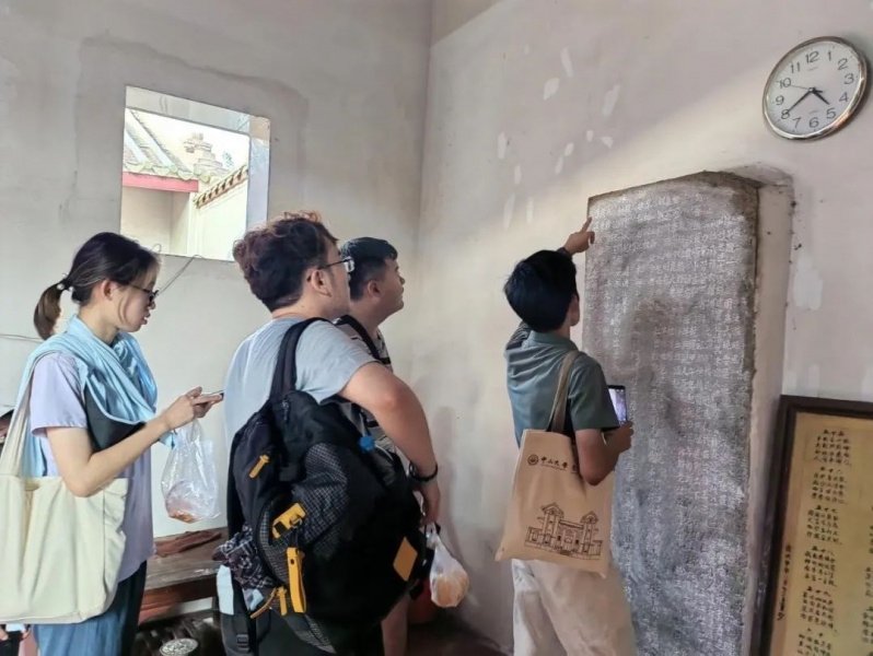 接下来同学们来到了靠近城中心位置的望海楼,当地的村民非常热心地带我们参观了望海楼。这里几乎是所城内的最高点,我们在望海楼的顶楼看到了靖海城的边界、大海和农田。从望海楼下来就是元氏祠堂,据元氏祠堂“在乐园修缮志”的碑讲述,元氏的祖先是洪武初从河南调配过来的军户。李老师带领我们回顾了明代的军户和卫所制度,同学们对所城有了进一步的了解。
