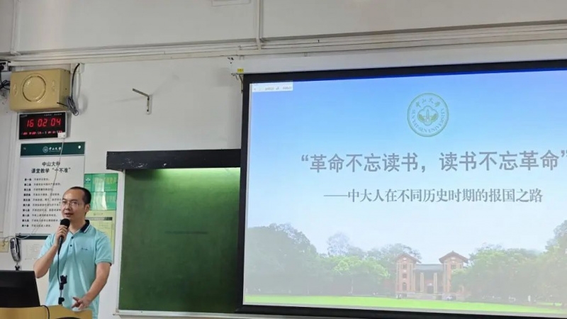 邱楚东副书记以“中大人在不同历史的报国之路”为主题作校史教育。中山大学的历史根植于中华民族的历史,战火纷飞中山手创,筚路蓝缕蔚为国光。在党的历史上,中山大学在共产主义的哺育中成长,中大人革命报国,甘洒热血;在新中国的历史上,学校在民族复兴的征程中前行,中大人实干报国,勤勉工作;在改革开放的历史上,学校在时代前沿矗立南天,中大人育才报国,踔厉奋发;在社会主义的发展史上,学校在建设家国中建设自身,统筹规划,错位发展,形成了“三校区五校园”的发展格局,扎根大湾区广州、珠海、深圳三地办学,面向世界,守正创新,正扎实推进学校事业高质量内涵式发展。中山大学坚持“以学生成长为中心”,通过“加强基础、促进交叉、尊重选择、卓越教学”的路径,培养具备学习力,思想力和行动力,能够引领未来的创新型人才。邱书记谆谆教诲,中大学子应踔厉奋发,积极获取更大的思想政治进步,积极向党组织靠拢,努力接过中华民族伟大复兴的历史重任。