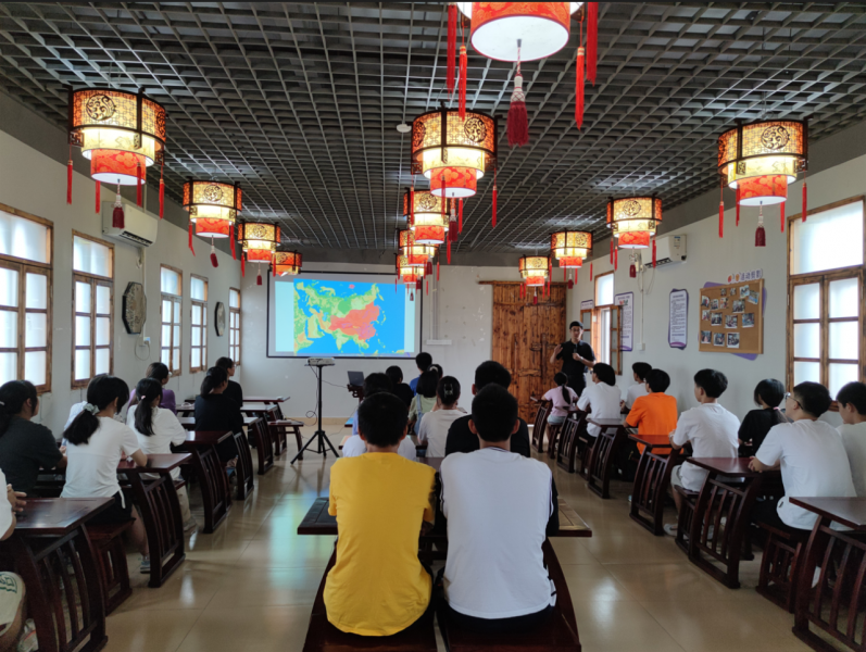 考虑到本次授课学生年龄段较小,李老师精心准备,深入浅出,从“空间上的中国”说开来,以谭其骧主编的《中国历史地图集》为引,向在座同学们介绍了中国历朝疆域确立和历史地图的绘制等方面内容,以生动的故事吸引听众,以严谨的学理感染学生,极大地拓展了在座同学们的视野,给今后的学习阅读增添了全新的视野与维度。