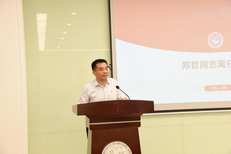 郑哲同志作离任报告,他对过去两年多来担任学系党总支书记的工作进行总结和回顾,对学系党政领导班子和全体教职工表示衷心的感谢,并祝愿学系的发展更加美好。
