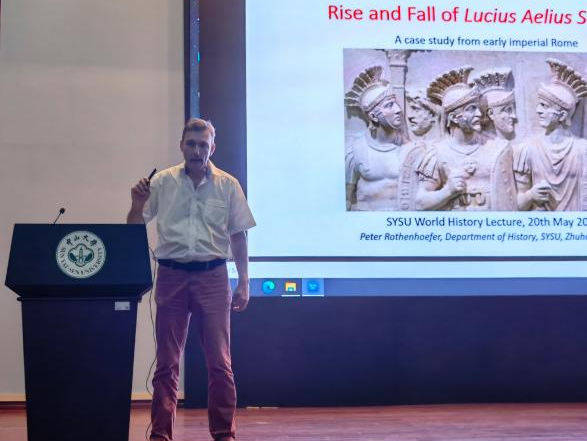5月20日晚,在南校园第三教学楼讲学厅,我系Peter Rothenh?fer 教授以“罗马帝国早期的塞亚努斯的兴衰”为题讲授了一堂专业导学公开课。于薇副教授担任本次导学课的主持人。杨晓东助理教授也出席了本次课程。