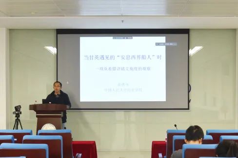 11月27日下午,中山大学人文高等研究院和历史学系(珠海)联合主办的“古代语言文字与古史研究——古代地中海世界文明史研究”系列讲座在中山大学珠海校区海琴6号A326讲学厅举行,于中山大学南校园340栋直播。本次讲座主题为“当甘英遇见‘安息西界船人’ 时:一项从古希腊语铭文角度的观察”,由中国人民大学历史学院徐晓旭教授主讲,中山大学人文高等研究院特邀访问教授李政主持。