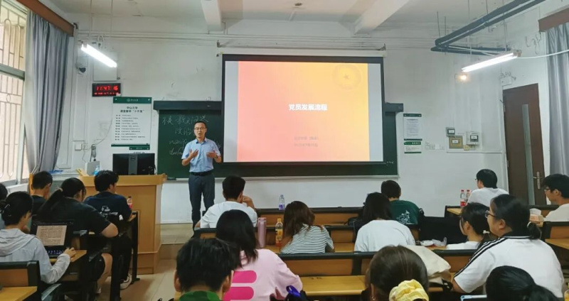 为加强学生理想信念教育,9月26日,我系面向2025级新生组织开展入党教育。本次入党教育由马克思主义学院青年教师专职辅导员黄金林老师主讲。