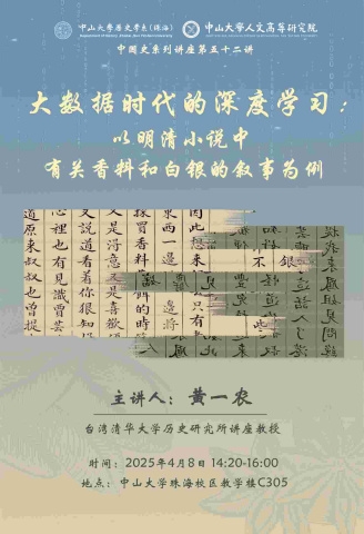 讲座主题:大数据时代的深度学习:以明清小说中有关香料与白银的叙事为例
