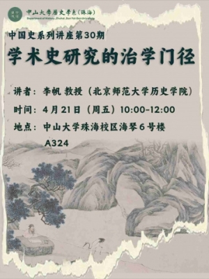 导航痕迹 首页 讲座活动预告 讲座活动预告 李帆:学术史研究的治学门径 地点:珠海校区海琴6号A324 时间:2023/04/21 10:00 ~ 12:00 曲柄睿:佣书成学:中古知识的结集、生产与传播 地点:珠海校区海琴6号A326 时间:2023/04/20 14:30 ~ 16:30 贾珺:一战影像,影像一战——西线军事环境史初探 地点:珠海校区海琴6号A324 时间:2023/04/19 19:00 ~ 21:00 孙丽萍:国际援助印尼财团IGG与东南亚现代化启动 地点: 珠海校区海琴6号A326 时间:2023/04/13 19:00 ~ 21:00 周尚意:景观意义的人文主义地理学解读方法 地点:海琴6号A324 时间:2023/03/31 15:30 ~ 17:30 李凯:明理与历史教育的“澄明之思” 地点:珠海校区海琴6号A324 时间:2023/03/25 09:00 ~ 11:30 雷晋豪:《穆天子传》 周穆王西行的历史地理:兼论文本相关问题 地点:珠海校区海琴6号A326 时间:2023/03/24 19:00 ~ 21:00 孙会修:旅莫支部的互相批评与互相训练 地点:海琴6号A324 时间:2022/12/16 19:00 ~ 21:00 宫秀华:希腊文明探源 地点:海琴6号A326 时间:2022/12/11 15:00 ~ 17:00 胡阿祥:孙吴的“变脸”:史实与口碑 地点:海琴6号A326 时间:2022/11/11 15:00 ~ 17:00 第三届中山大学珠海史学论坛暨2022年度校庆报告会 地点:珠海校区海琴 6 号 时间:2022/11/05 09:00 ~ 2022/11/06 18:00 徐畅:东汉三国郡、县以下分部治理问题新探 地点:海琴6号A324 时间:2022/10/31 15:00 ~ 17:00 葛剑雄:黄河与中华文明 地点:珠海校区海琴6号C103 时间:2022/10/22 10:00 ~ 12:00 葛剑雄:唐朝的另一面 地点:珠海校区海琴6号C203 时间:2022/10/20 10:00 ~ 12:00 徐畅:石刻史料与唐代京畿区域地理研究新进展 地点:海琴6号A324 时间:2022/09/30 15:00 ~ 17:00 赵春光:南岛语族考古研究的新进展 地点:海琴6号A324 时间:2022/09/20 19:00 ~ 21:00 多元化史学工作坊——史料的发掘与结构化整理 地点:海琴6号A324 时间:2022/09/17 15:00 ~ 17:00 “明清时期的货币、民生与国用”学术研讨会 地点:广东潮州 时间:2022/08/05 09:00 ~ 2022/08/09 18:00 Vlad The Impaler:The History of The Real Dracula 地点:腾讯会议:923-255-364 时间:2022/06/23 15:00 ~ 17:00 蛮族亦或楷模?——文艺复兴作品所见奥斯曼土耳其人之形象 地点:珠海校区海琴6号A324 时间:2022/06/17 15:00 ~ 17:00 蒋重跃:怎样检验学术论文的内在质量?——“概念衡文法”略说 地点:珠海校区海琴6号A324 时间:2022/06/16 16:30 ~ 18:00 身体与国政:黄老学说影响下的战国秦汉政治 地点:海琴 6 号 A324 时间:2022/06/10 19:00 ~ 21:00 “同一账,记两簿”:清代账本的复式簿记——以山西盐商与当商账本为例 地点:海琴6号A324 时间:2022/06/09 16:30 ~ 18:00 Vincenzo De Masi:古代艺术和技术简史及其对现代社会的影响 地点:教学楼F403 时间:2022/06/02 15:00 ~ 17:00 分页 首页 « … 页面 2 页面 3 当前页 4 页面 5 页面 6 … 末页 »
