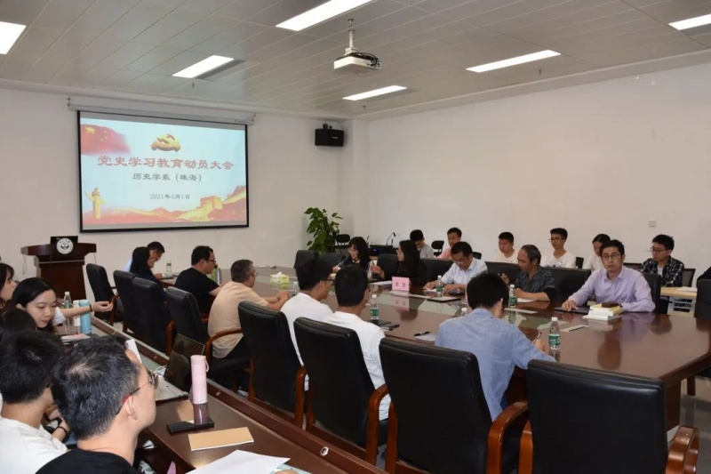 为学习贯彻习近平总书记在党史学习教育动员大会上的重要讲话精神和党中央《关于在全党开展党史学习教育的通知》精神,全面落实党中央部署要求以及省委、学校党委的工作部署,2021年4月1日,历史学系(珠海)在海琴六号A324会议室召开党史学习教育动员大会。历史学系(珠海)党总支书记郑哲作动员讲话,学校党史教育第六指导组李思泽同志、叶玮茵同志列席。历史学系(珠海)党总支全体教职工党员和学生党员代表参加会议。大会由党总支副书记万忠娟主持。